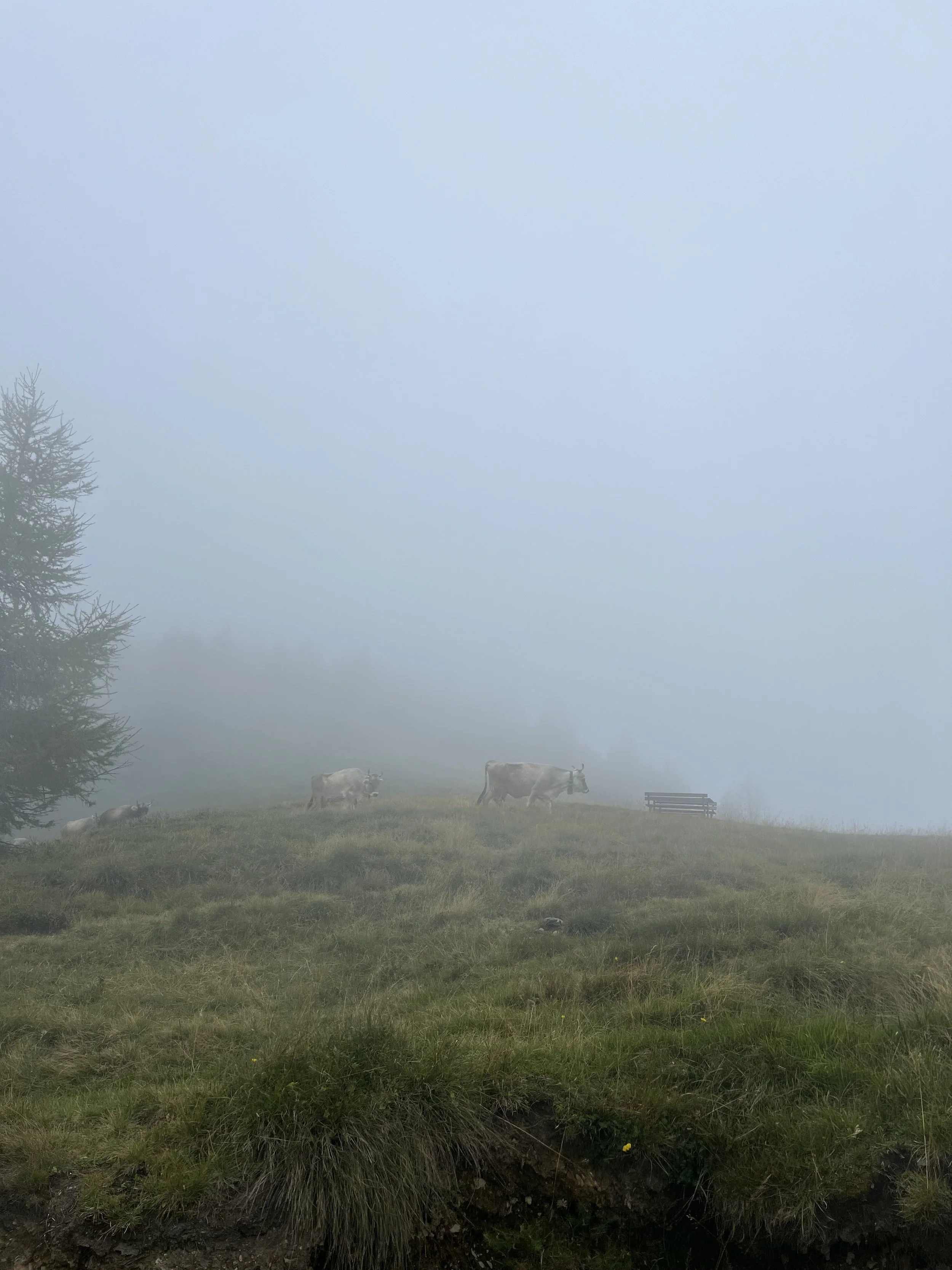 facemmo poco più di 3km insieme quando salì vento, nebbia, freddo, e dopo un pò di pioggia. il meteo prevedeva forti temporali già da un paio di giorni. quindi partire per un'escursione dove la maggior parte dei 74+ km sono sopra al livello degli alberi e allo scoperto, con un’allerta gialla per temporali, sembrava una cosa un po sciocca.